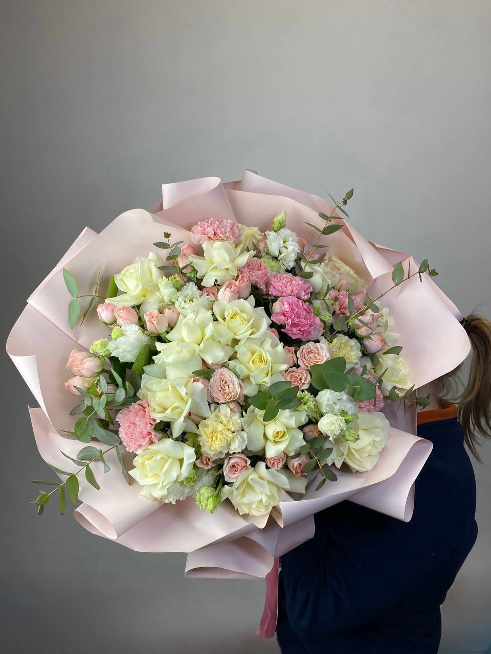 вывернутые розы, эвкалипт, лента, авторская упаковка.