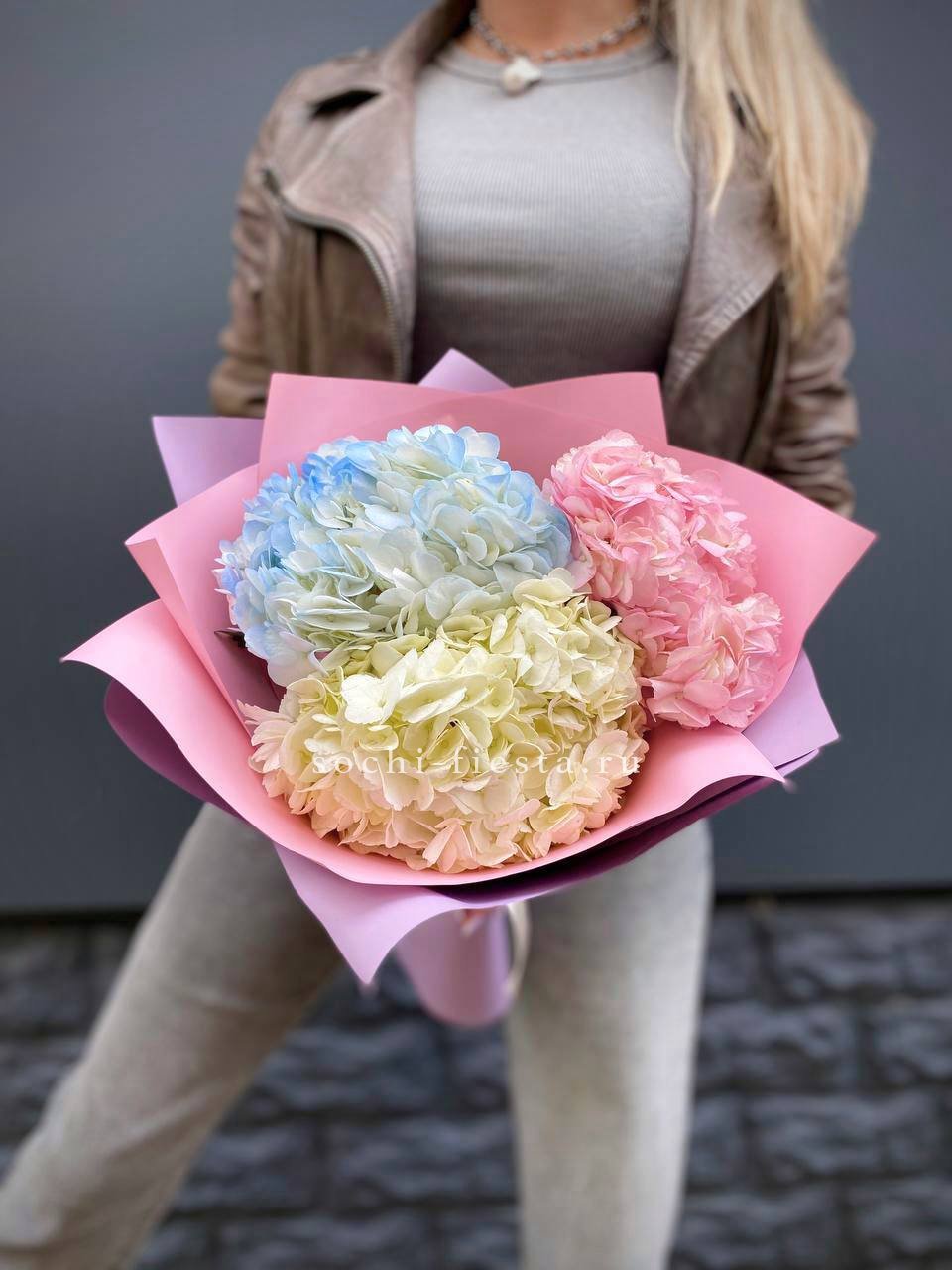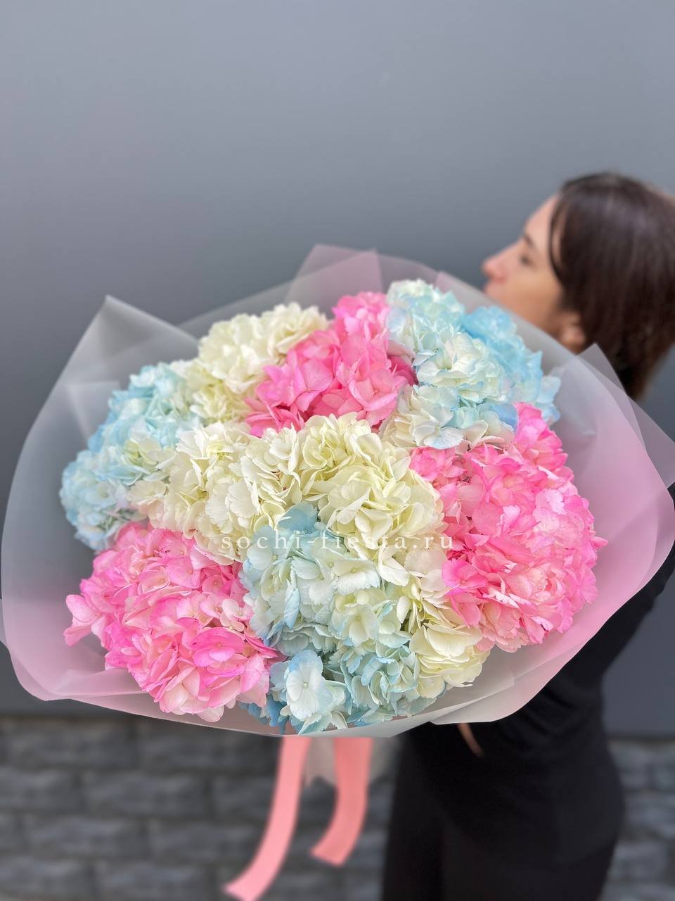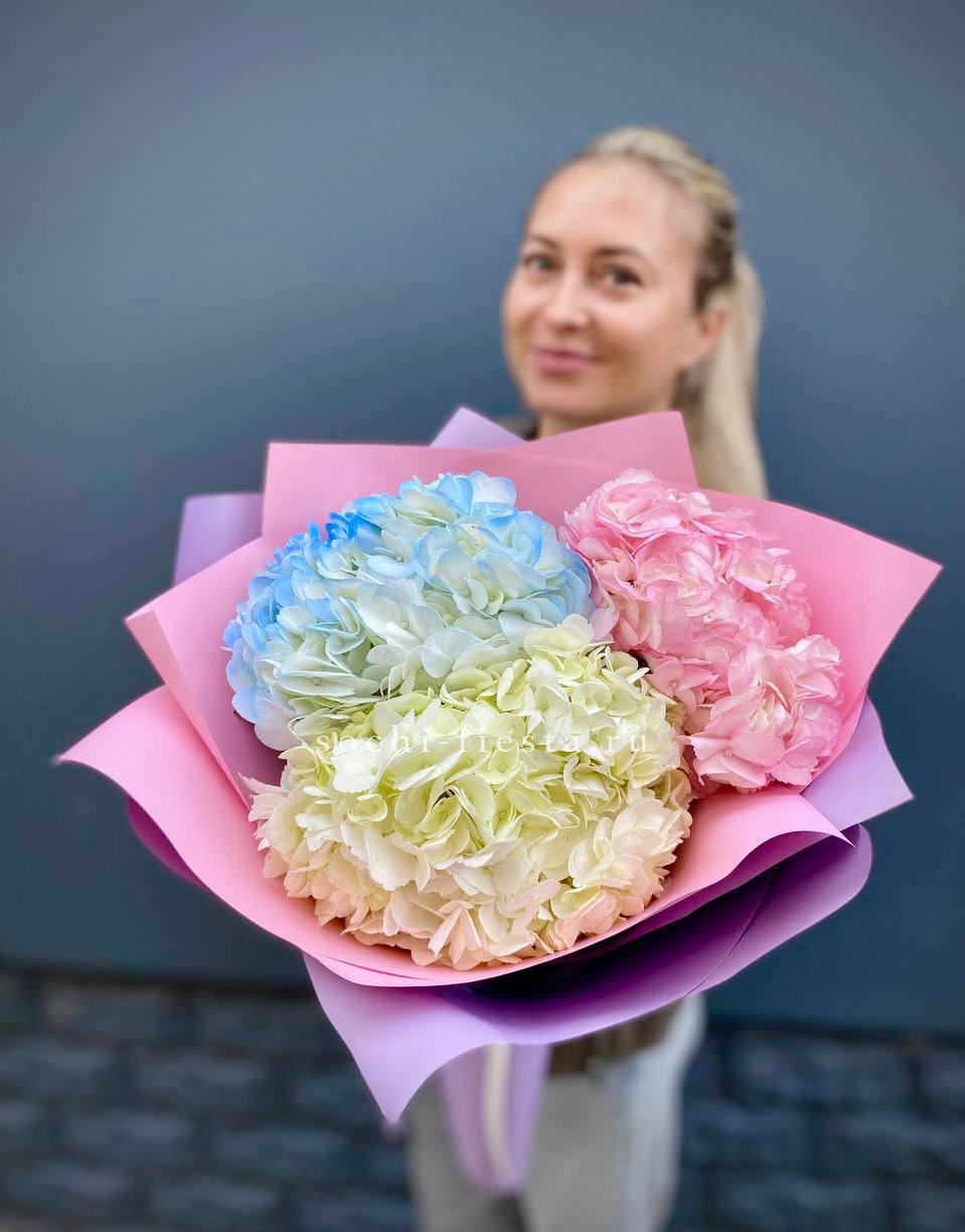 гортензия - 7 шт., лента, дизайнерская упаковка.