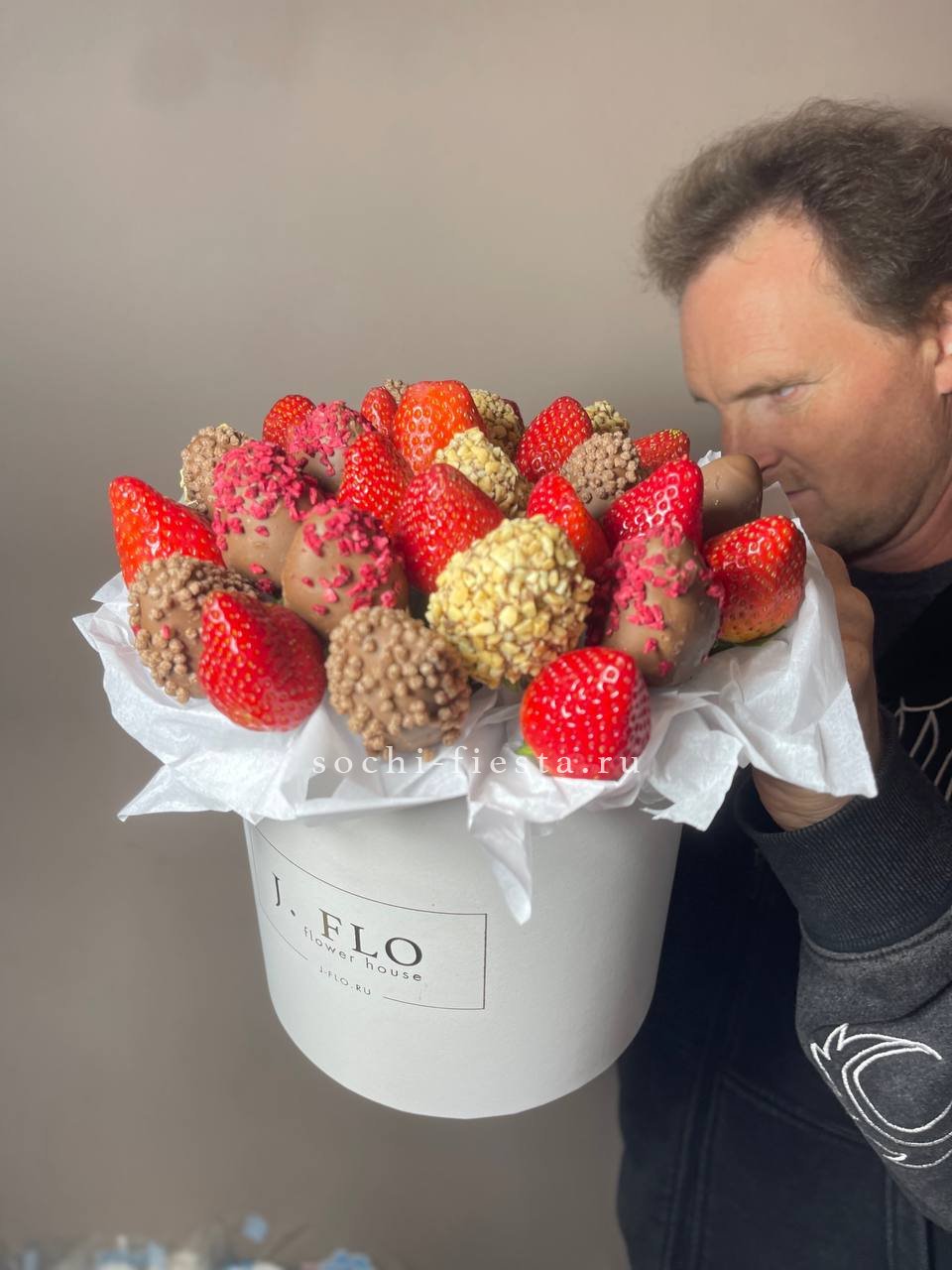 клубника в бельгийском шоколаде и свежая в боксе 16.