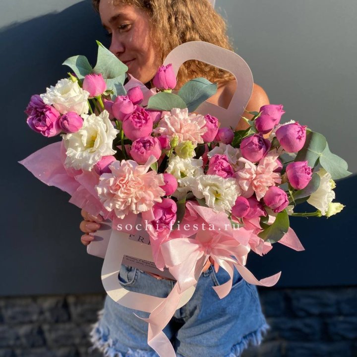 Размер выбирается по повод. Коллеге в Якутске — M или L. Юбилей родителей — XL. Выписка из роддома — L в пудровой палитре. Корпоративный юбилей — XXL. Романтический подарок — M или L в яркой палитре.