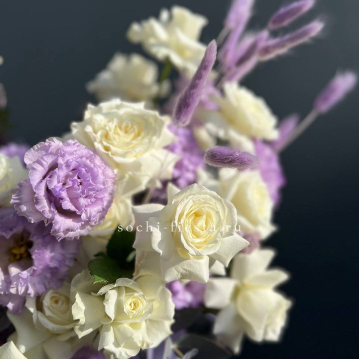 Наполнение подбирается под сезон. Зимой — амариллис, розы, ранункулюсы. Весной — тюльпаны, ранункулюсы, фрезия. Летом — пионы в мае-июне, гортензия в июле-августе. Осенью — хризантемы и декоративные травы.