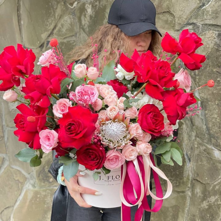 Шляпная коробка в студии Якутске закрепилась как практичный формат для корпоративных и семейных подарков. Композиция с флористической губкой, готовая к дарению без вазы. Удобно для офиса и для получателя, не требует ухода в первые 3-5 дней.