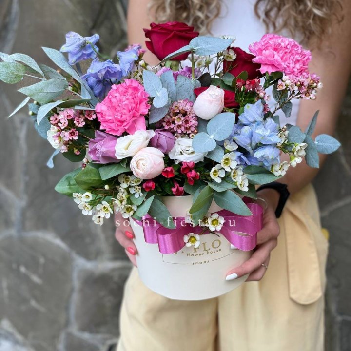 Шляпная коробка в студии Якутске закрепилась как практичный формат для корпоративных и семейных подарков. Композиция с флористической губкой, готовая к дарению без вазы. Удобно для офиса и для получателя, не требует ухода в первые 3-5 дней.