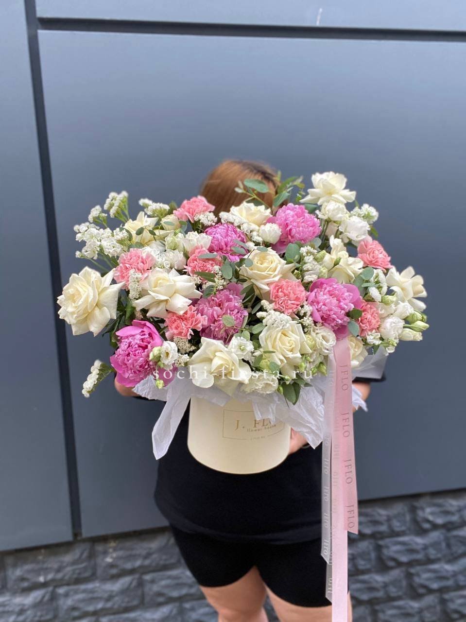 гортензия, розы, озотамус, диантус, бомбастик, хлопок, хризантема бокс 16.