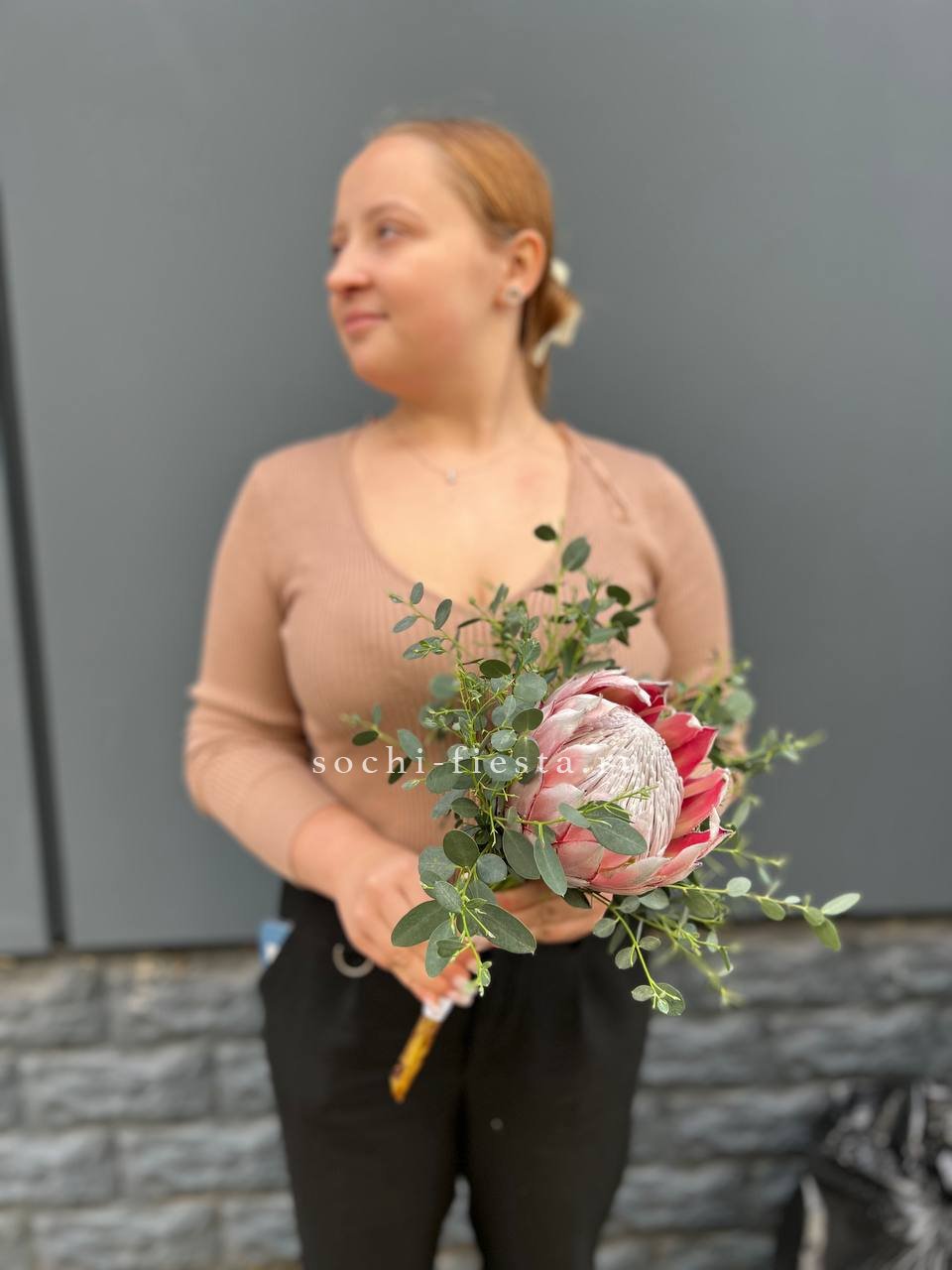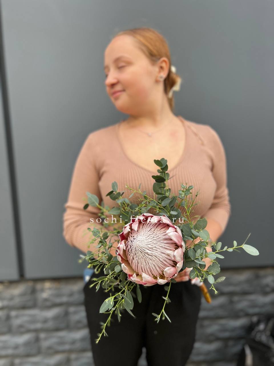 Кремовые и белые оттенки перетекают друг в друга, создавая мягкий переход без резких границ. Эвкалипт и дизайнерская упаковка завершают образ.