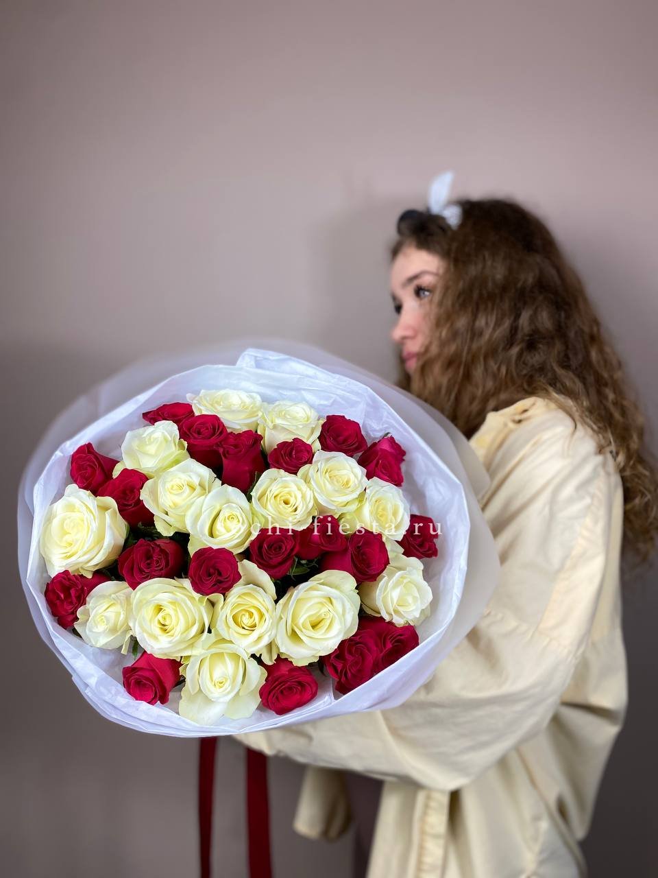 Для заказа товара "Букет из красных белых 35 роз" с доставкой в Якутске нажмите в корзину