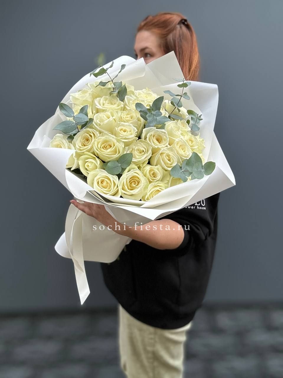 Для заказа товара "25 белых роз с сухоцветами" с доставкой в Якутске нажмите в корзину