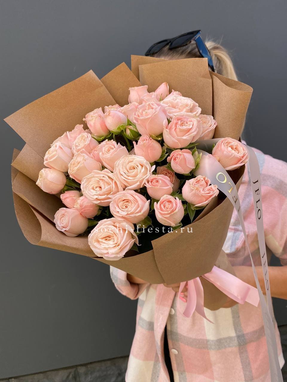 Кустовые розы Бомбастик в крафте