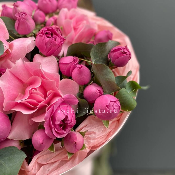 Зима и лето в Якутске — розы и хризантемы как основа. Эти виды стабильны в поставках круглый год. Флорист дополняет их сезонными акцентами: хвойные ветви зимой, открытая эустома летом. Сборный букет в любое время года выглядит живым и актуальным.
