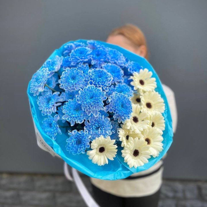 Основа сборных букетов в Якутске: розы (Freedom, Mondial, Avalanche), хризантема кустовая, альстромерия, эустома, фрезия, вероника. Дополнительно — ранункулюсы в сезон, хризантема одиночная, ирис весной, тюльпаны в апреле. Состав зависит от текущей поставки и сезона. Флорист всегда предлагает то, что в лучшей форме прямо сейчас.