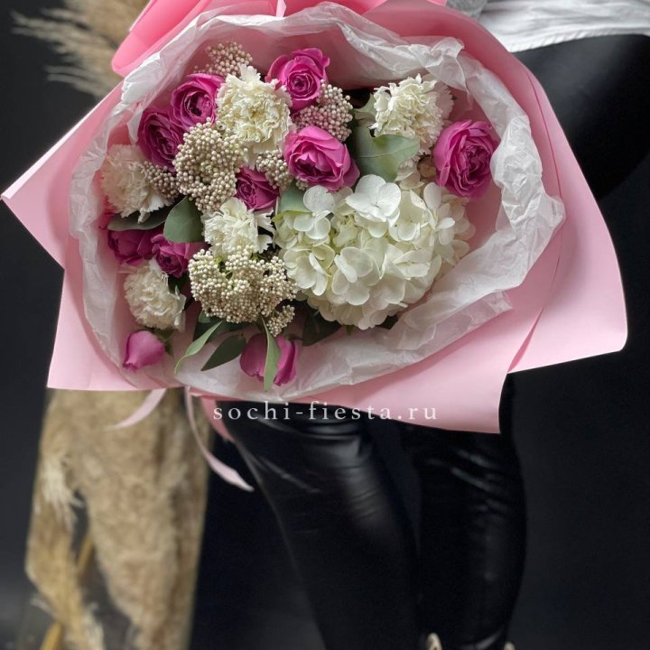 Зима и лето в Якутске — розы и хризантемы как основа. Эти виды стабильны в поставках круглый год. Флорист дополняет их сезонными акцентами: хвойные ветви зимой, открытая эустома летом. Сборный букет в любое время года выглядит живым и актуальным.