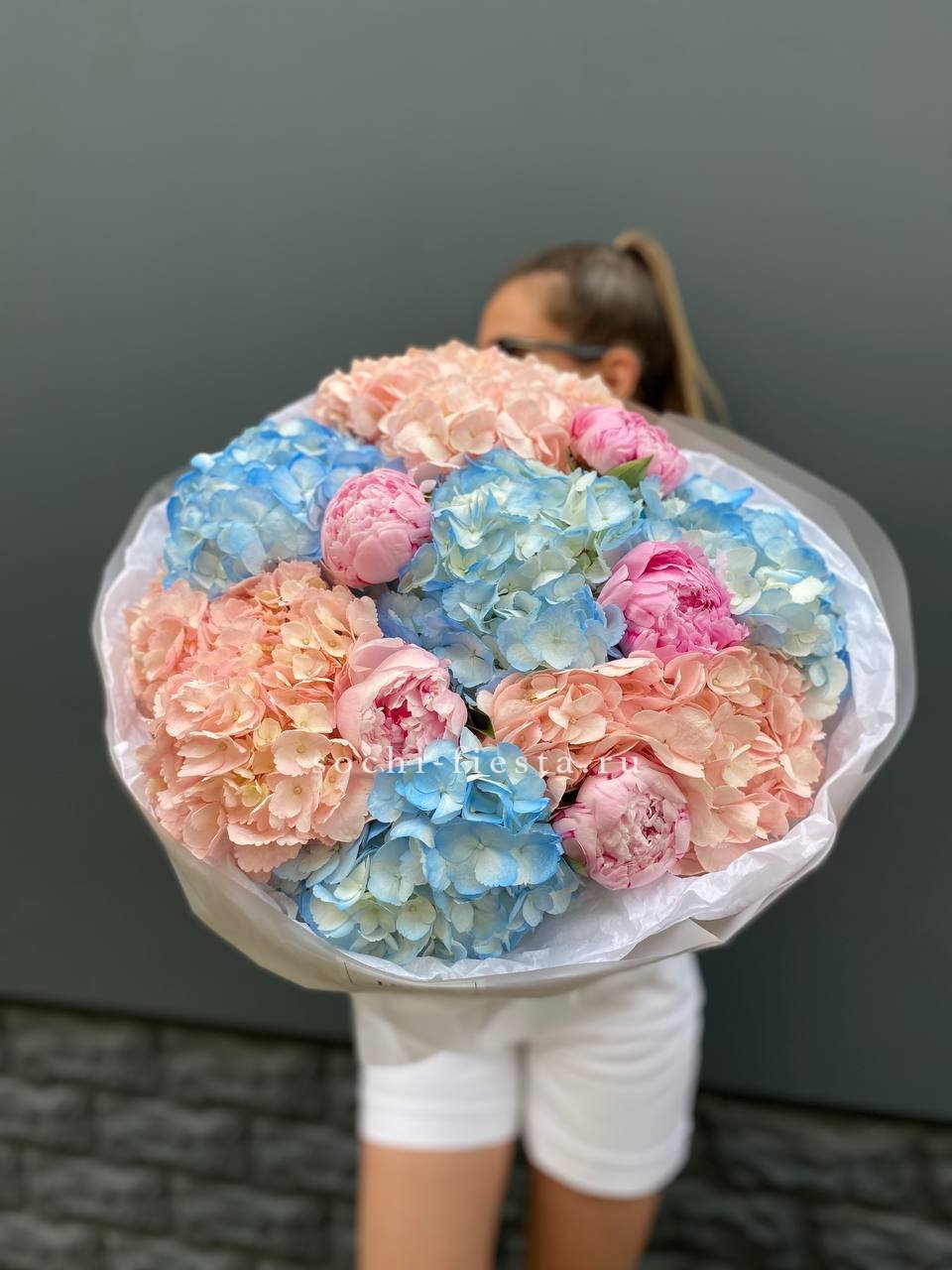 Дуобукет гортензии с пионами